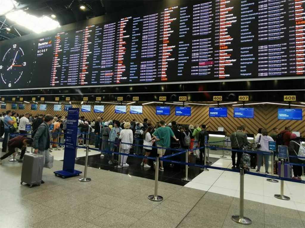 «Entre el 19 de julio y las 08.00 (hora Moscú) del 22 de julio, los aeropuertos de la región de Moscú, así como Púlkovo de San Petersburgo acumularon 517 vuelos cancelados, mientras 169 aviones fueron desviados hacia aeródromos de reserva. La situación afectó a 75 mil pasajeros», señala el comunicado.