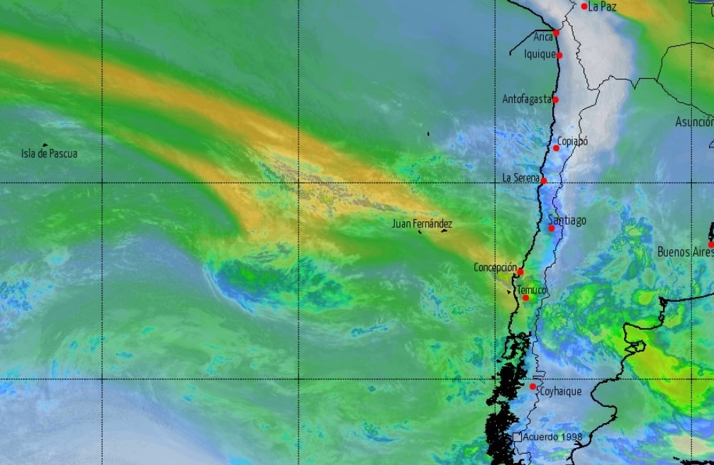 Un río atmosférico es una banda relativamente angosta y larga de vapor de agua con mucha humedad, que viaja suspendida en las alturas desde zonas cálidas hacia el sur y suele causar intensas precipitaciones cuando toca tierra.
