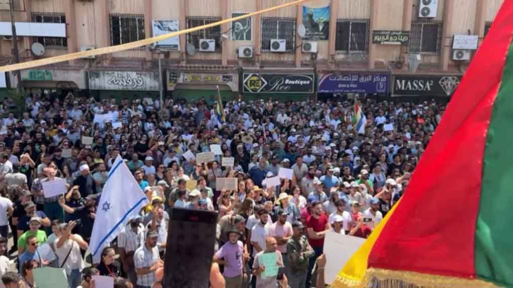 En las imágenes, se observaron banderas drusas e israelíes, en medio de ausencia de la bandera nacional. Los participantes levantaron carteles con frases que denuncian las violaciones cometidas en la provincia, además de carteles con frases críticas al actual gobierno sirio.