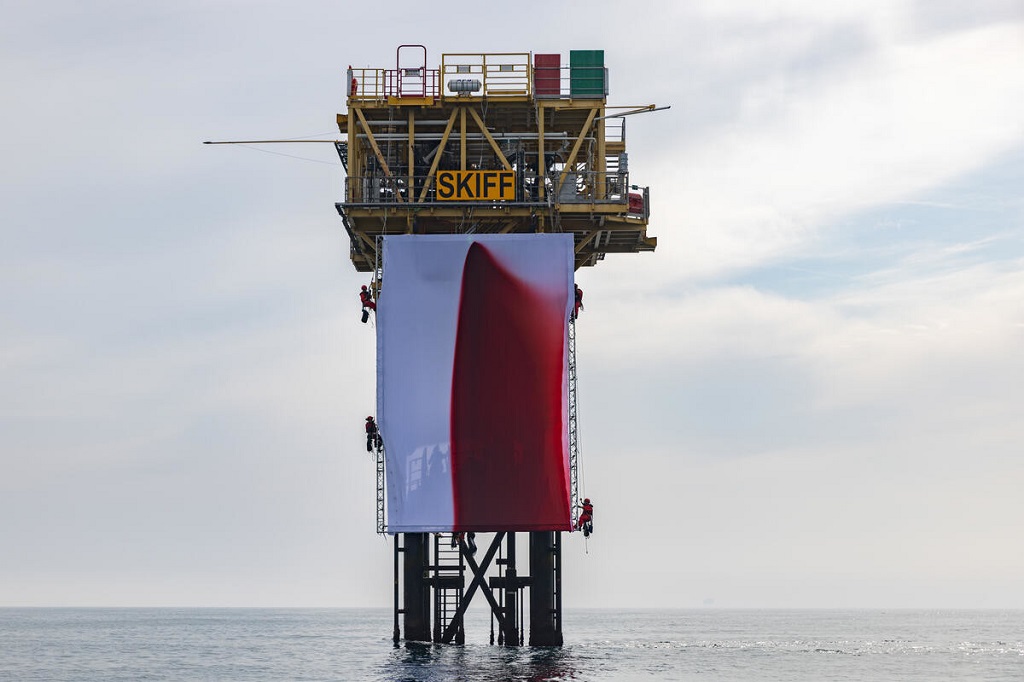 Esta obra de arte es la primera que se instala en una estructura de extracción activa en alta mar, según destacó el grupo medioambiental.