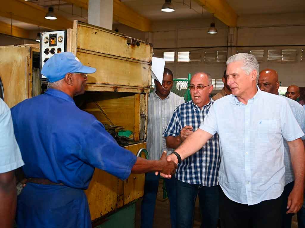 Díaz-Canel visitó la Fábrica de Fusibles y Desconectivos de Villa Clara, perteneciente a la Empresa de Producciones Electromecánicas del Ministerio de Energía y Minas. Esta es la única entidad del país que fabrica fusibles y tiene como meta entregar unos 150 mil este año.