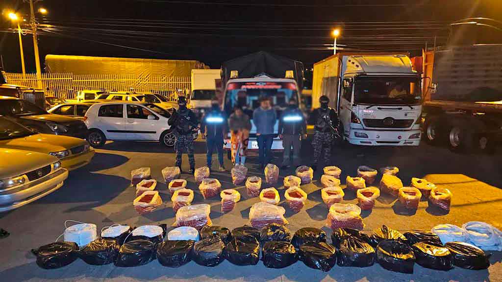 Los agentes detuvieron a dos personas que trasladaban en un camión el material desde la provincia de El Oro, más al sur ecuatoriano, en límite con Perú.