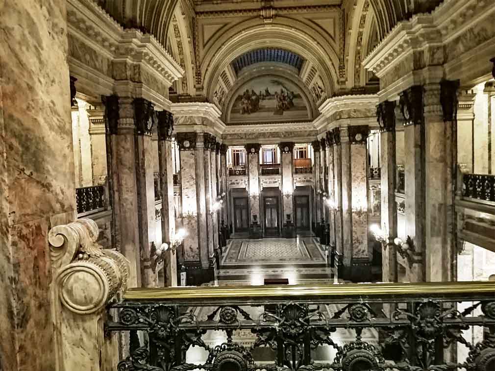 El también denominado Palacio de las Leyes es un edificio de un marcado estilo neoclásico. Sus fachadas, paredes interiores, bóvedas y columnas están recubiertas de distintos mármoles todos extraídos de minas abiertas en el país.