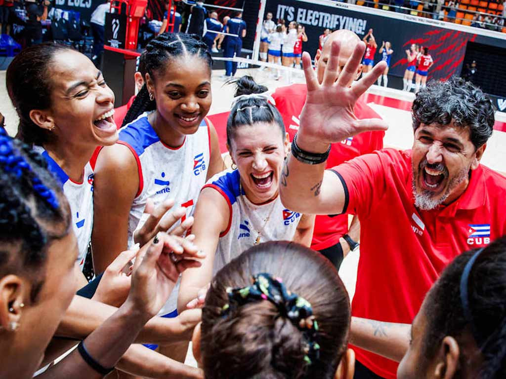 La jornada fue también de alegría para el equipo de Cuba, que consiguió su primer triunfo de la lid a costa de Eslovaquia en cuatro sets (27-25, 25-21, 22-25, 26-24). De manera particular sobresalió el desempeño ofensivo de Evilania Martínez, que anotó 20 puntos, y Laura Suárez, con 17.