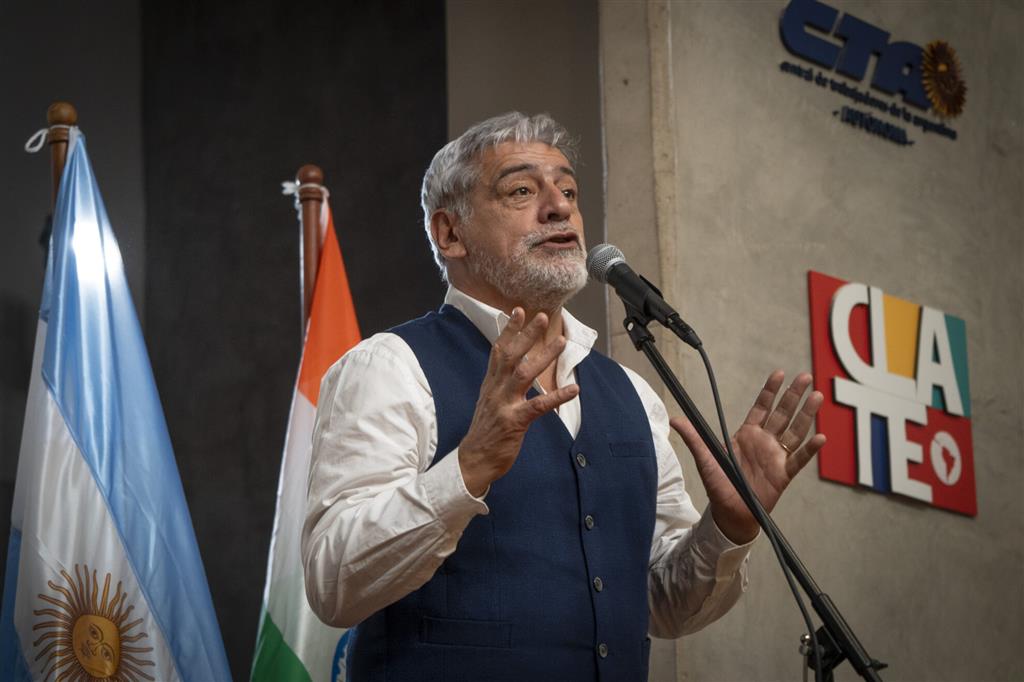 “Cuando pensamos en la India, nos viene a la mente la figura de Gandhi, y en él la no violencia, la tremenda lucha contra el imperialismo, que es importante para todo nuestro continente pero muy particularmente para Argentina, donde todavía una parte de nuestro territorio nacional está ocupado por una potencia extranjera”, expresó el presidente de CLATE, Julio Fuentes, al abrir el evento.