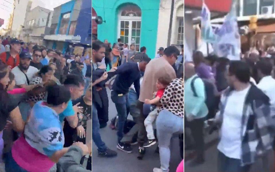 Todo comenzaba con una caravana, a pie, por una céntrica calle, pero solo logró avanzar un par de cuadras, hasta que se encontraron con manifestantes que rechazaban la presencia de los funcionarios nacionales. Allí los libertarios quedarán terceros o cuartos en las urnas el domingo.