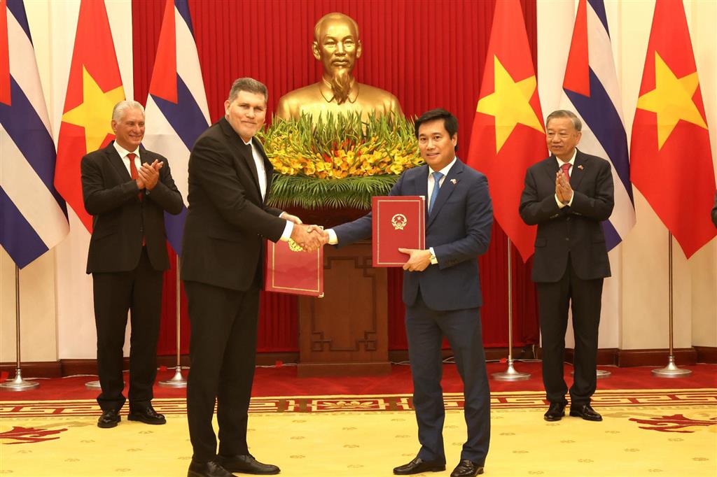 En el acto protocolar, que tuvo lugar al término de las conversaciones oficiales entre ambos líderes, fueron entregados el convenio de colaboración entre los gobiernos vietnamita y cubano dirigido a impulsar la producción de arroz en la isla en el período 2025-2027.