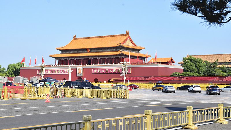 La Plaza de Tiananmen y a lo largo de la avenida Changhan está todo dispuesto con arreglos florales y otros carteles alegóricos a esta efeméride.