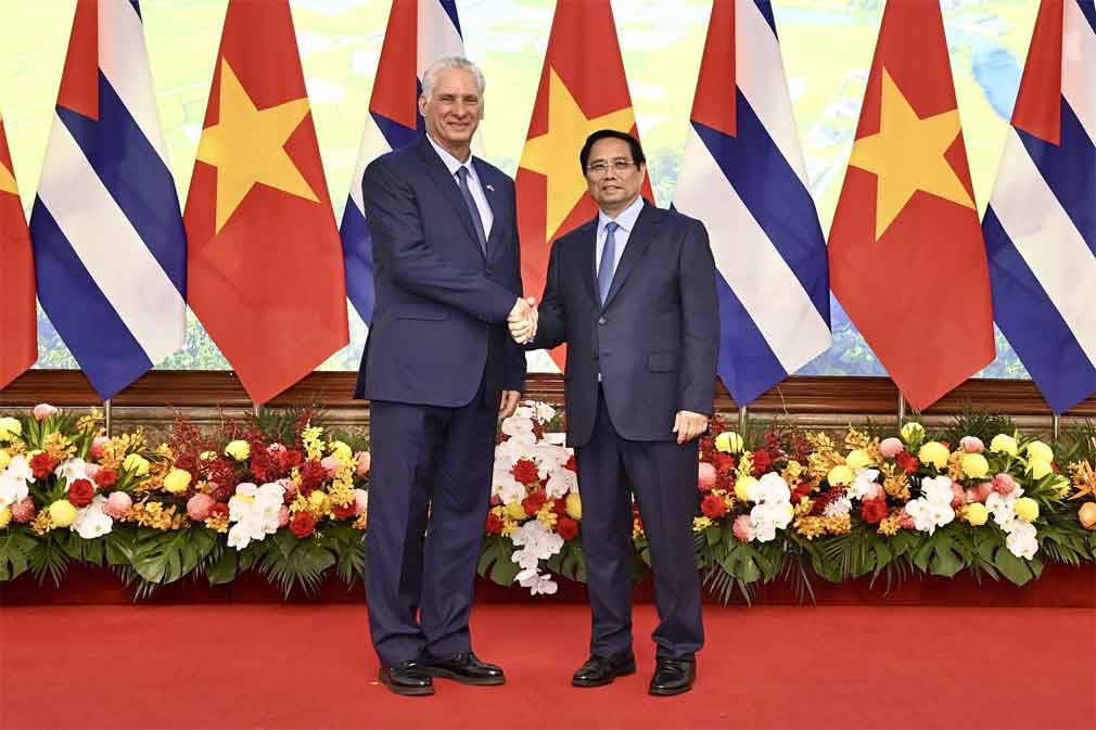 Al referirse a las conversaciones oficiales de Díaz-Canel con el secretario general del Partido Comunista de Vietnam (PCV) To Lam, el documento señala que ambos líderes expresaron su satisfacción por el buen desarrollo de las relaciones políticas y la cooperación a todos los niveles y en todos los ámbitos.
