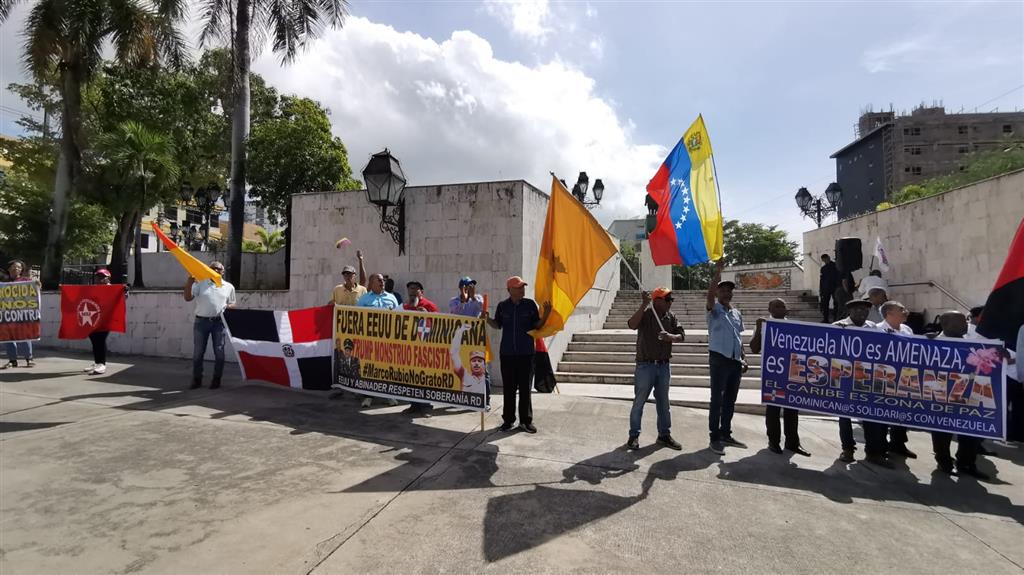 Los manifestantes rechazaron la presencia militar de Washington en la región y condenaron la posición del presidente dominicano, Luis Abinader, quien en días recientes respaldó, dijeron, la política agresiva del presidente Donald Trump.