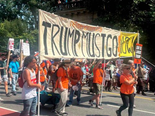 Washington, 6 sep (Prensa Latina) Miles de personas marcharon hoy por la céntrica calle 16 pasando cerca de la Casa Blanca hasta la Plaza de la Libertad en contra de las políticas del presidente de Estados Unidos, Donald Trump.