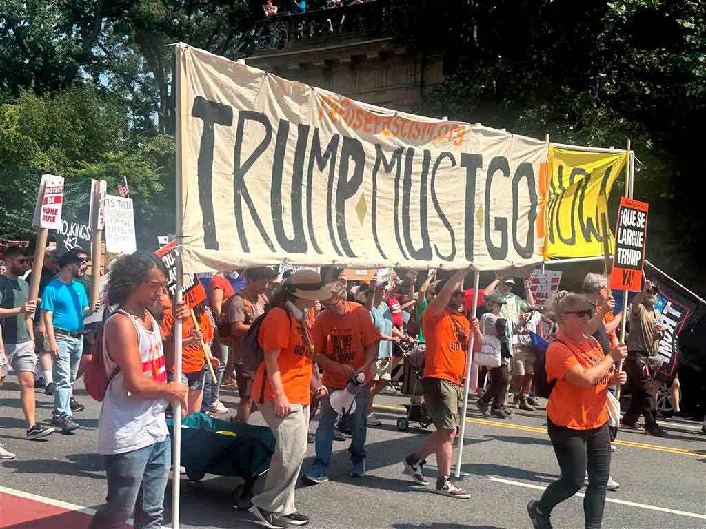 La marcha nacional “desde nuestras comunidades locales hasta la Casa Blanca” exige “que las fuerzas federales abandonen DC YA”.