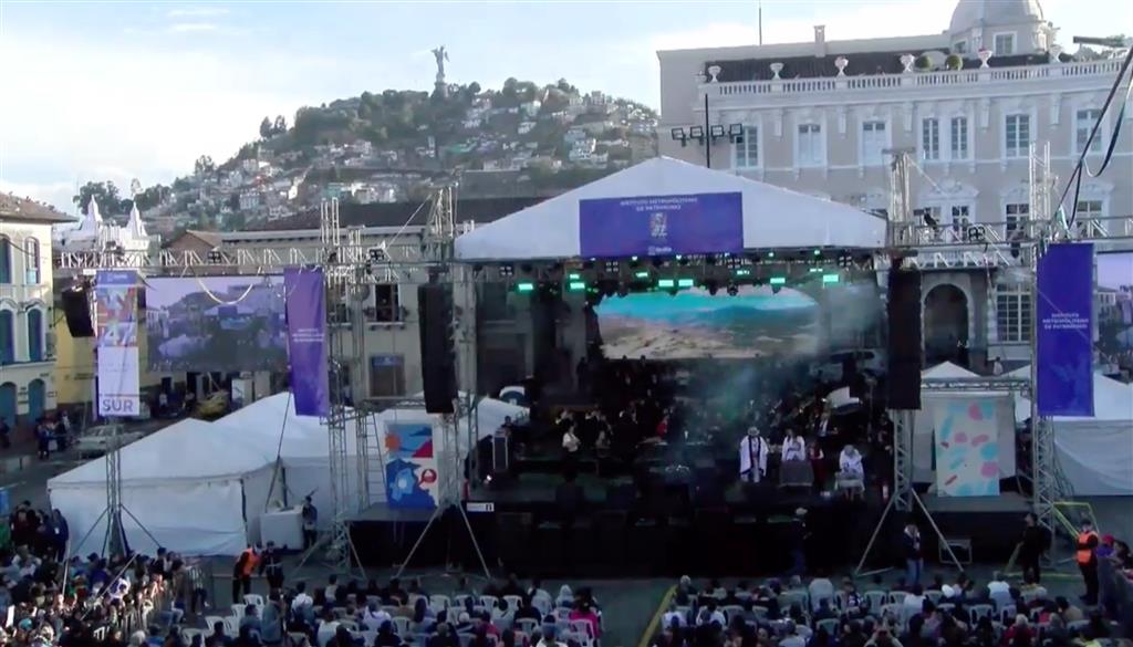 El montaje escénico, inspirado en los cuatro puntos cardinales y la cosmovisión andina, resaltó la conexión de Quito con el mundo y con sus raíces culturales.
