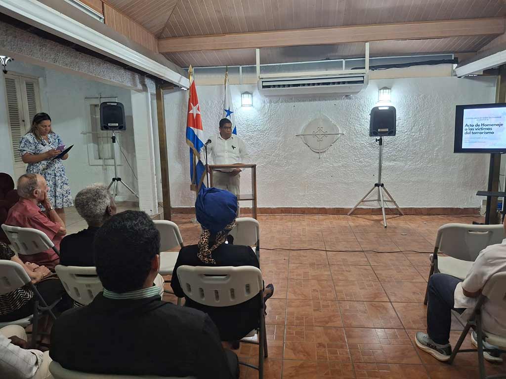 En el acto, que también mostró solidaridad con el pueblo de Palestina, víctima del genocidio israelí, el embajador de la nación caribeña en el istmo, Víctor Cairo, indicó que su país ha sido víctima del terrorismo y puso como ejemplo que más de tres mil 400 compatriotas fallecieron como resultado de las agresiones de Estados Unidos.