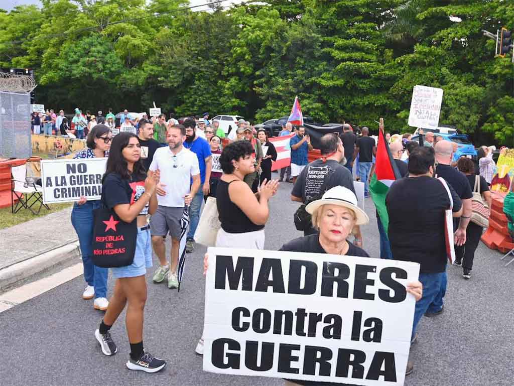 “Madres contra la Guerra alzamos nuestra voz firme para rechazar la presencia de bases militares de Estados Unidos en Puerto Rico y los ejercicios bélicos que se realizan”, dijo su portavoz Sonia Santiago Hernández durante una manifestación frente al Fuerte Buchanan, en el contiguo municipio de Guaynabo.