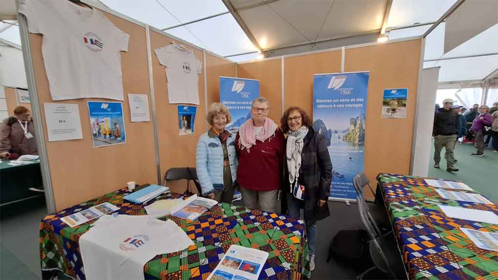 En su estand en el evento que culminó hoy en la Región Parisina, la organización de viajes con enfoque socio-político recaudó fondos para el proyecto de pintar un centro artístico en la Habana Vieja.