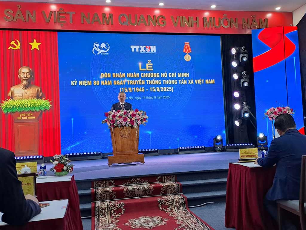 Como parte de la conmemoración, y en nombre de los dirigentes del PCV y el Estado vietnamita, To Lam entregó a la VNA la Orden Ho Chi Minh en reconocimiento a su tradición y méritos sobresalientes en la causa revolucionaria del Partido y de la nación, una distinción que merece por tercera vez.