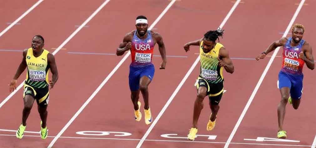 Oblique Seville hizo la carrera de su vida y se llevó el oro con registro de nueve segundos y 77 centésimas, por delante de su compatriota Kishane Thompson, que marcó 9.82.