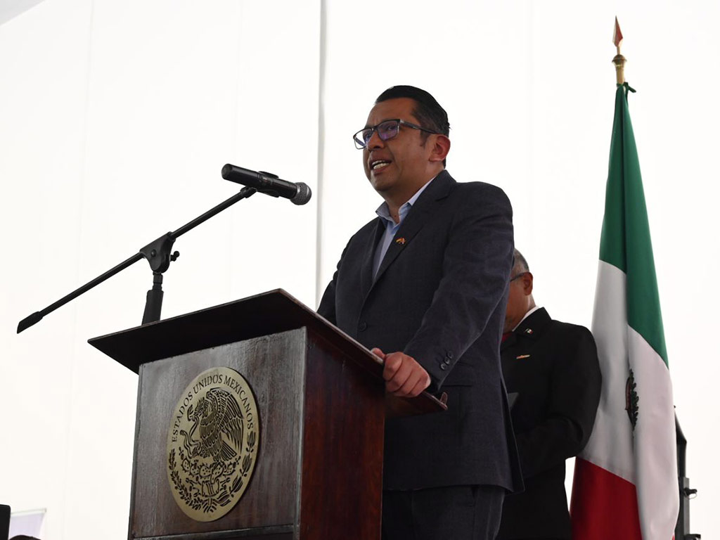 El diplomático destacó la significación de la bandera tricolor que une a todos los mexicanos y la veneración que merecen los héroes “que nos dieron patria”.