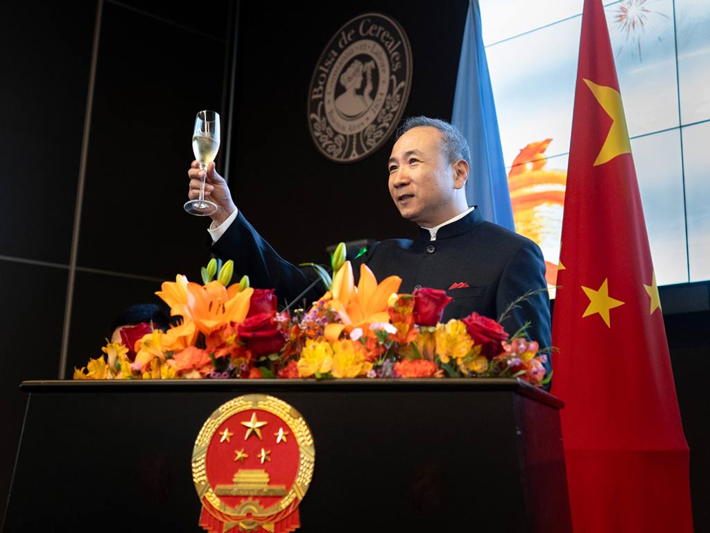 El jefe de Misión presidió un acto en ocasión del aniversario 80 de la victoria de la Guerra Antifascista Mundial y el 80 aniversario del triunfo de la Resistencia del Pueblo Chino contra la Agresión Japonesa, al que asistieron en representación del gobierno argentino el jefe de Gabinete, Guillermo Fancos, y el secretario de Turismo, Daniel Scioli.