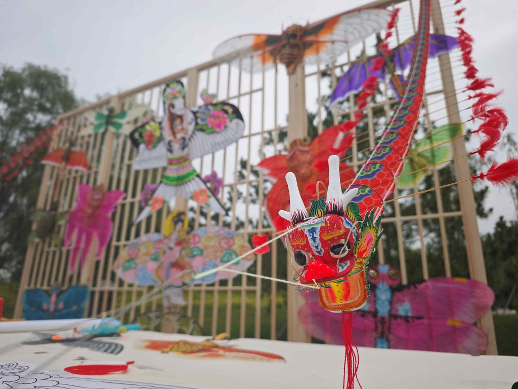 La ceremonia de lanzamiento incluyó exhibiciones de cometas tradicionales, grabados en madera de Yangjiabu y recortes de papel, reconocidos como patrimonio cultural inmaterial chino.