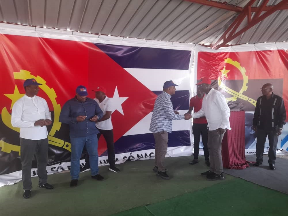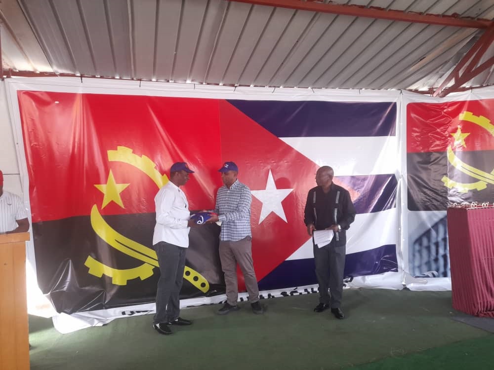 El embajador cubano agradeció la amistad y solidaridad con la isla y recibió como regalo de la asociación una pancarta de vinil con las banderas de Angola y Cuba; además una escultura en metal.