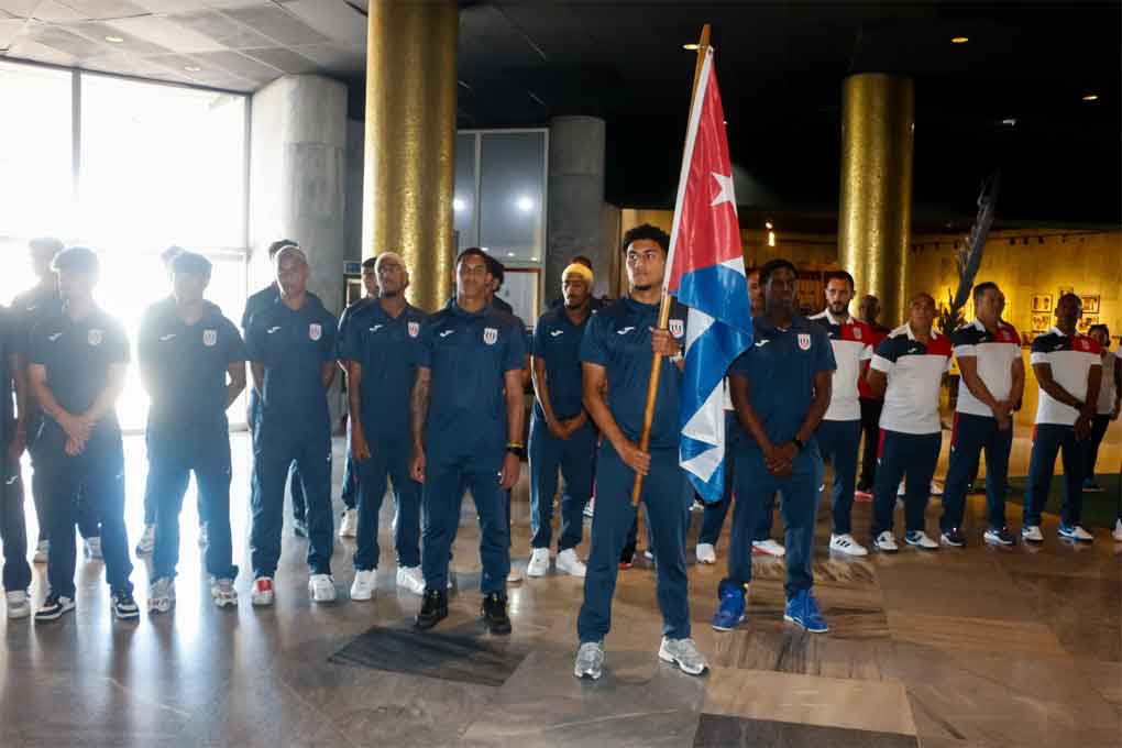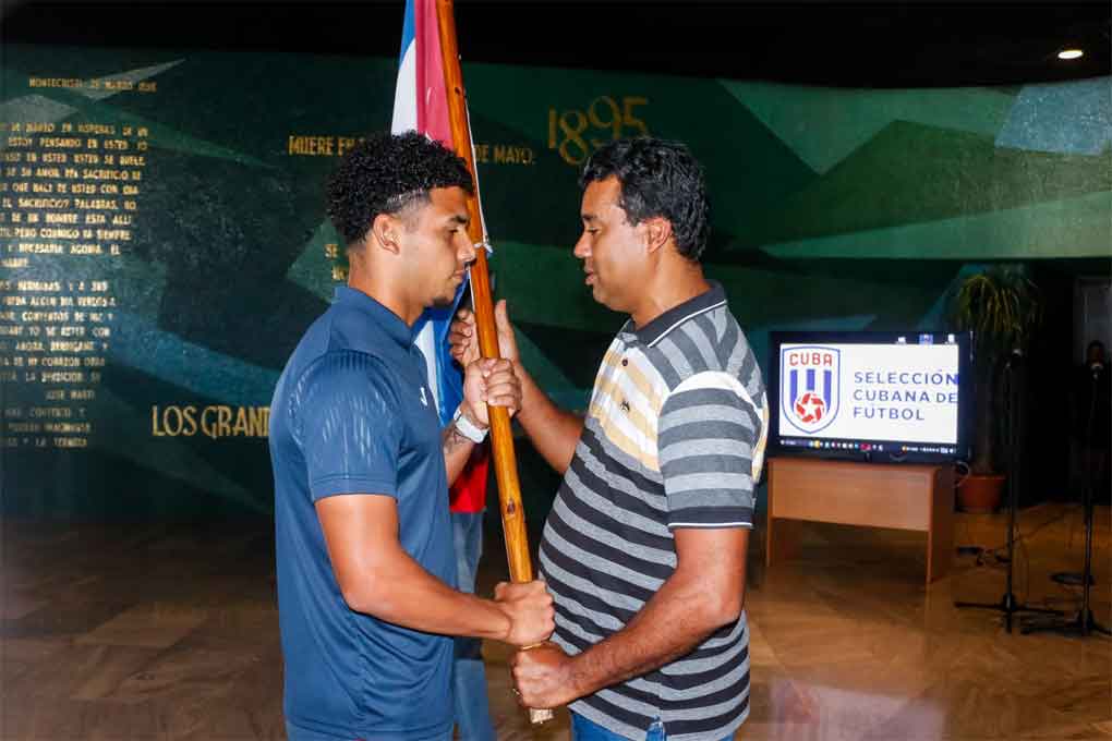 En acto celebrado en el Memorial José Martí de esta capital, el vicepresidente primero del Instituto Cubano de Deportes, Raúl Fornés, entregó la enseña nacional al capitán del conjunto Karel Pérez, quien suma minutos en el fútbol europeo.