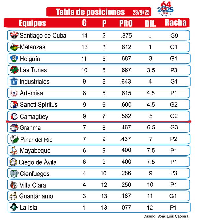 En otros resultados, los Cachorros de Holguín destrozaron 15-4 a los Elefantes de Cienfuegos para adueñarse del tercer lugar, apoyados en dos jonrones y cinco impulsadas de Ernesto Torres y los Indios de Guantánamo vencieron 3-1 a los Cazadores de Artemisa.