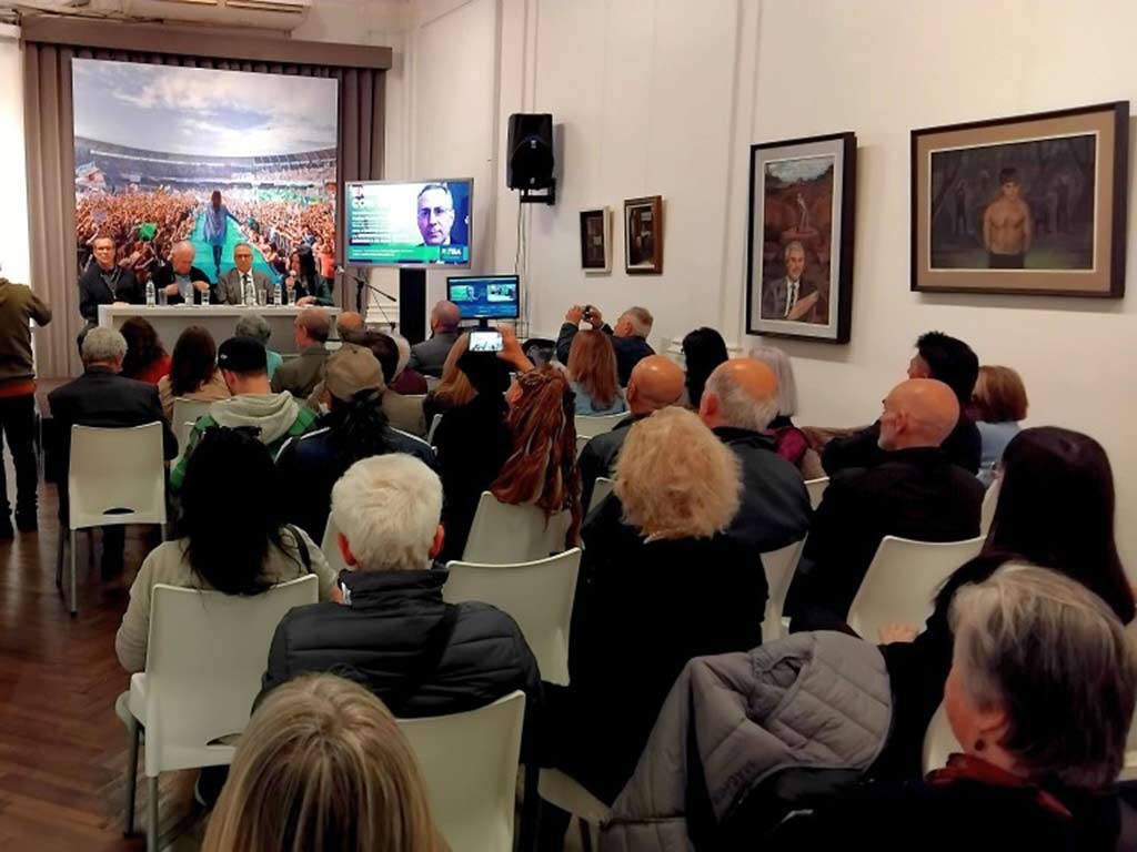 Los acompañaron en la mesa María Alarcón, responsable de Política Exterior del instituto, y Tristan Bauer, prestigioso cineasta e intelectual argentino.