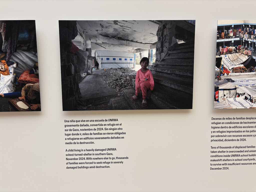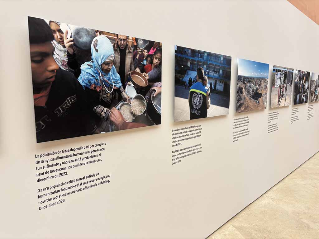 Con la colaboración imprescindible de la UNRWA (Agencia de Naciones Unidas para los Refugiados Palestinos), se muestran 27 imágenes captadas por fotoperiodistas desde octubre de 2023, que documentan la vida cotidiana en la Franja de Gaza en medio de la masacre de Israel.