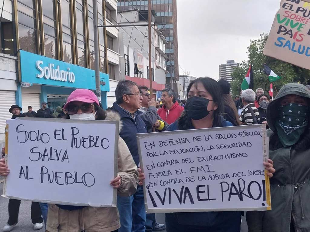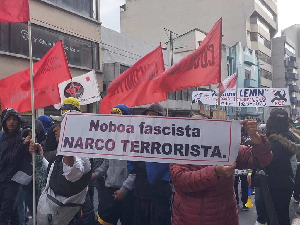 Con pancartas y consignas contra el presidente Daniel Noboa y su gestión, los participantes en la movilización recorrieron calles de Quito, desde las afueras de la sede del Instituto Ecuatoriano de Seguridad Social (IESS) hasta la plaza Santo Domingo, en el Centro Histórico de la urbe.