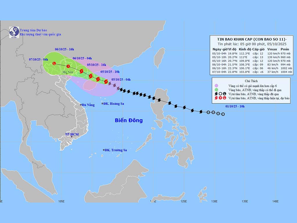 Por otro lado, las zonas costeras e islas de las provincias de Quang Ninh y Hai Phong experimentarán marejadas ciclónicas de 0,4 a 0,6 m, previéndose inundaciones en zonas bajas y desembocaduras de ríos debido a la crecida de aguas y las fuertes olas a partir de la tarde y noche del 5 de octubre.