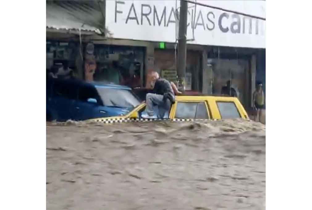 La víspera las intensas lluvias, incluso acompañadas de granizos, causaron severas inundaciones en la ciudad de Santa Ana, en el occidente del país, con riadas en calles y arrastre de vehículos en las vías.