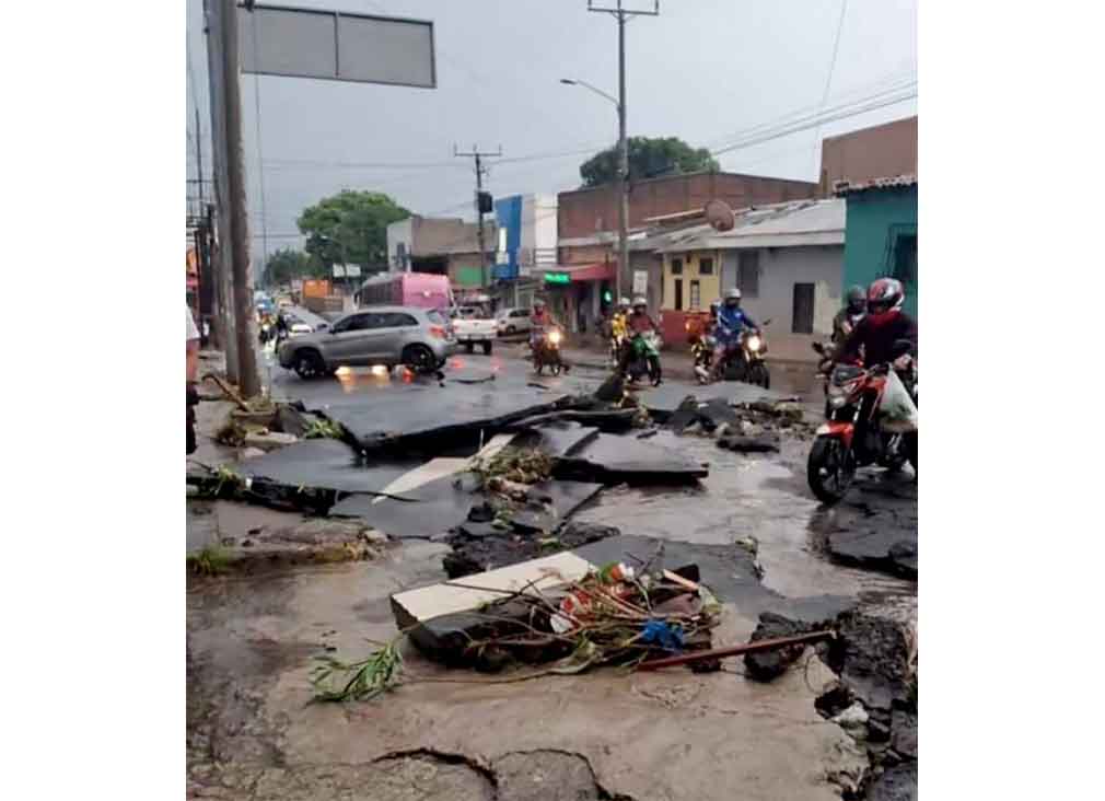 Según informes y materiales colocados en redes sociales en tramo de algunas calles hubo daños en el pavimento por la fuerza de la corriente de agua.