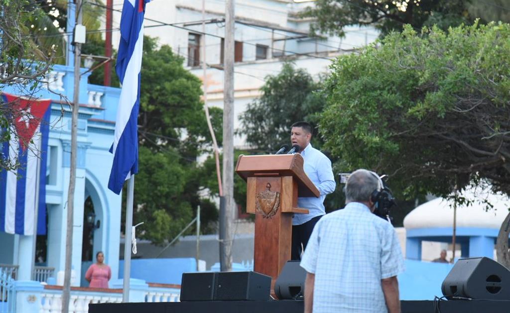 «Hoy no solo defendemos su derecho a la autodeterminación, sino la dignidad de América», afirmó el secretario de organización del Comité Central del Partido, Roberto Morales, en las palabras centrales del acto.