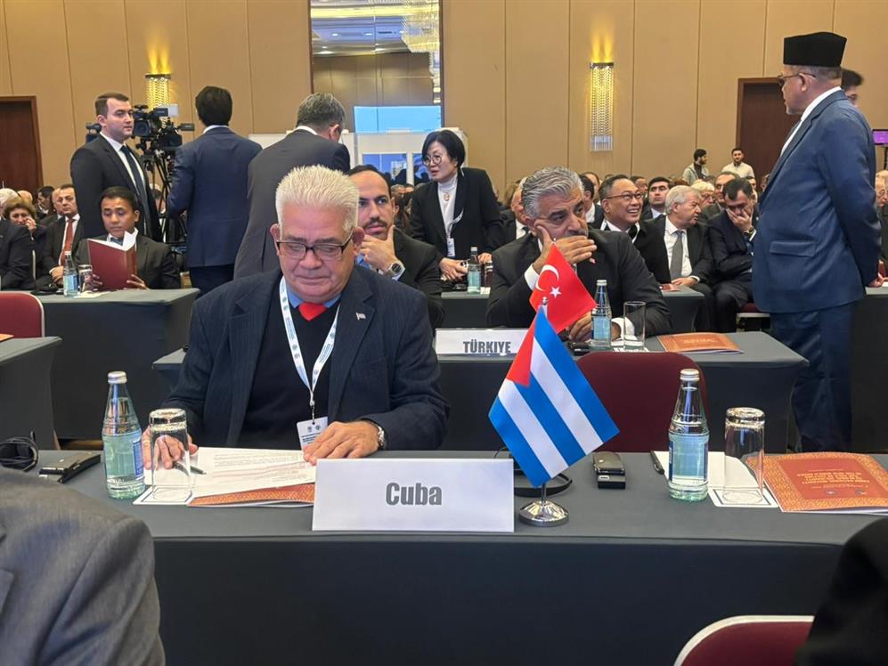 Según explicó Valdés, el evento sesionó en la ciudad de Bakú, y la representación de la nación caribeña participó por invitación del vicepresidente del Partido Nuevo Azerbaiyán, señor Tahir Budagov, anfitrión de la cita.