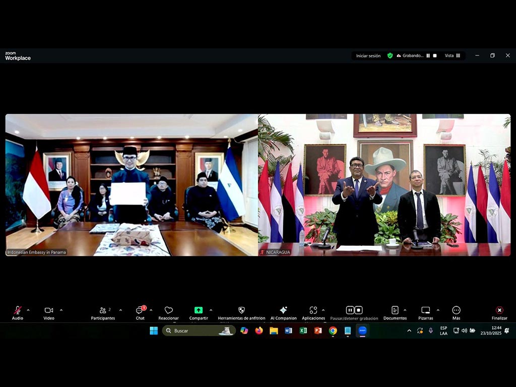 Por su parte, el embajador Hendra Halim transmitió los saludos de las más altas autoridades de su país al pueblo y gobierno de Nicaragua, y expresó su interés en seguir impulsando la cooperación bilateral en diversas áreas.