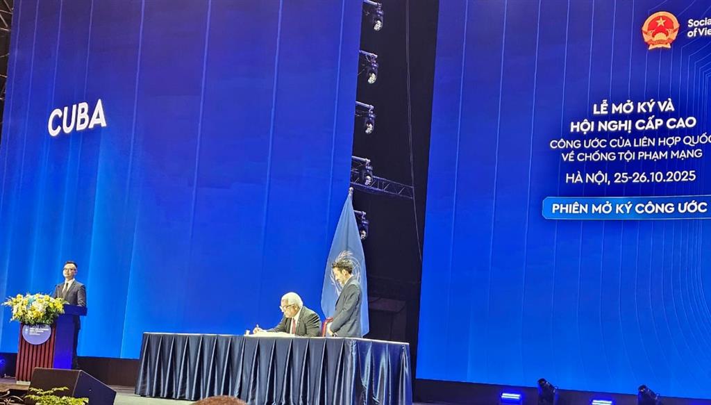 Hanoi, 25 oct (Prensa Latina) Cuba se convirtió hoy en uno de los primeros países signatarios de la Convención de Naciones Unidas contra la Ciberdelincuencia, cuya ceremonia de apertura a la firma se efectuó en el Centro Nacional de Convenciones de esta capital.