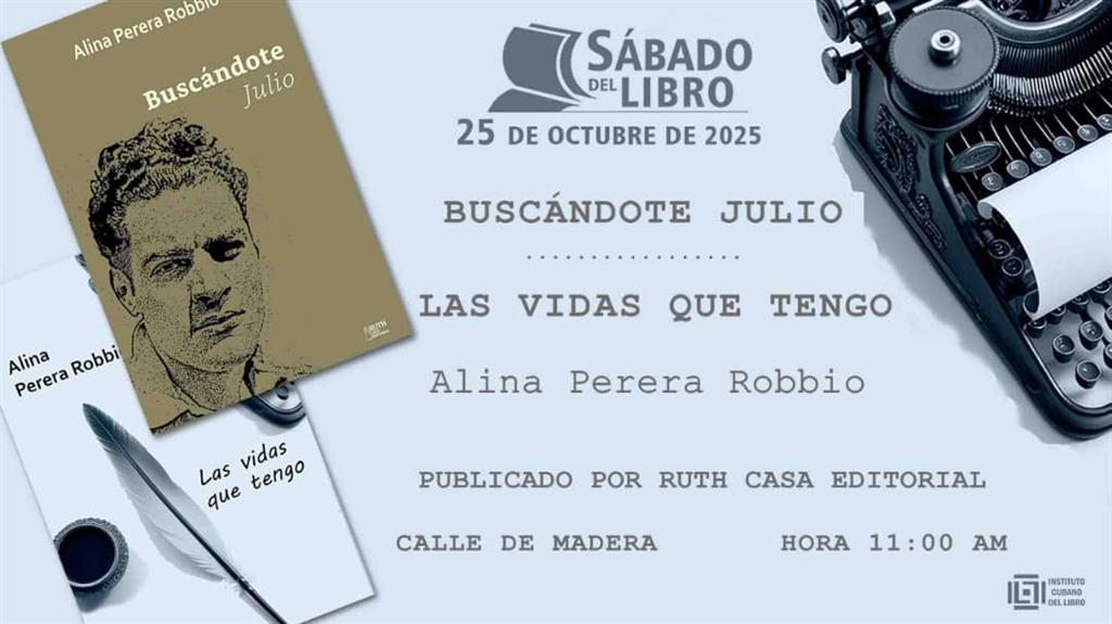 La presentación de los títulos Buscándote Julio y Las vidas que tengo, publicados por Ruth Casa Editorial, tendrá lugar a las 11:00, hora local, en la Calle de Madera, a un lado de la céntrica Plaza de Armas, de La Habana Vieja.