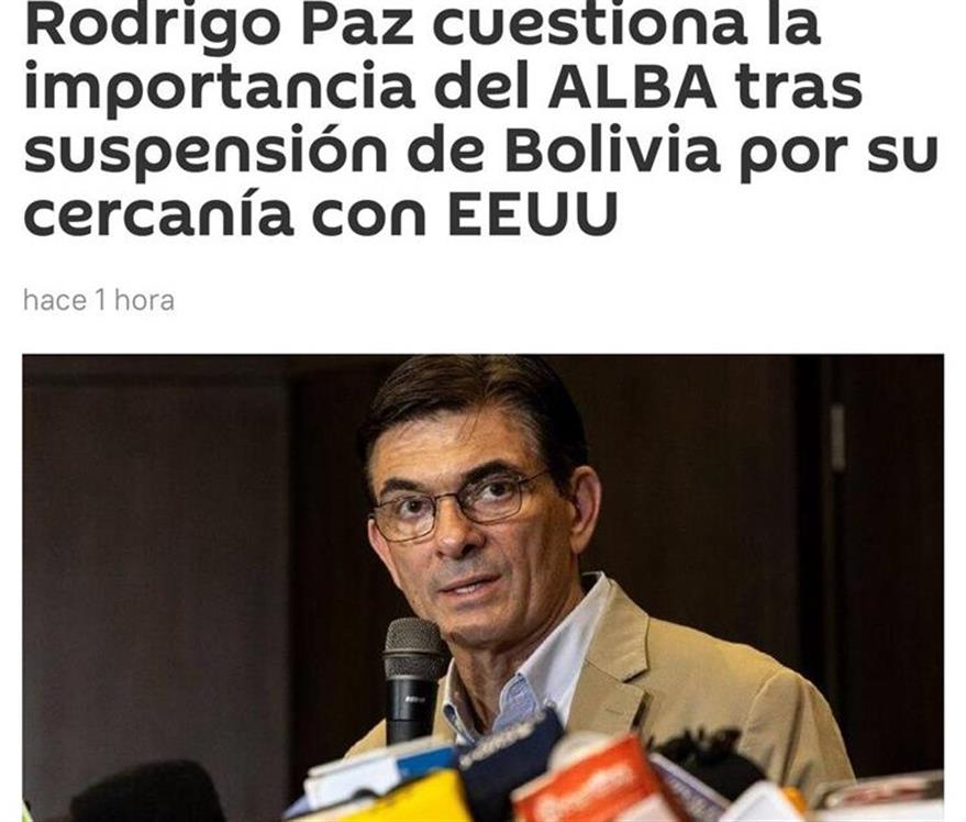En declaración publicada en su cuenta de Telegram, el alto diplomático venezolano afirmó que el mensaje de Paz sobre la Alianza “es una demostración de ignorancia y, peor aún, de desprecio hacia la historia y los valores bolivarianos que dieron vida a la República de Bolivia”.