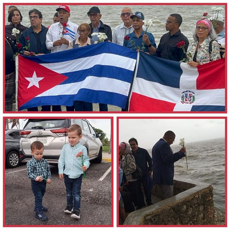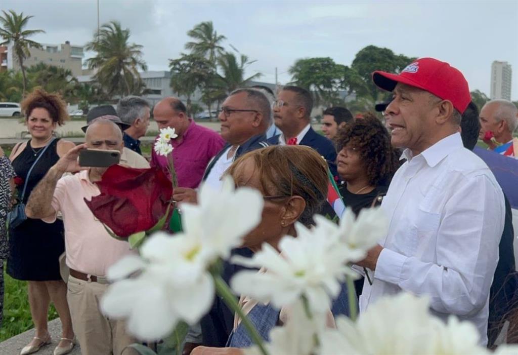 El mar gris y el cielo encapotado, por los efectos indirectos del huracán Melissa, no impidieron que decenas de personas, portando flores y banderas de ambos países, recordaran a uno de los héroes más queridos por el pueblo cubano.
