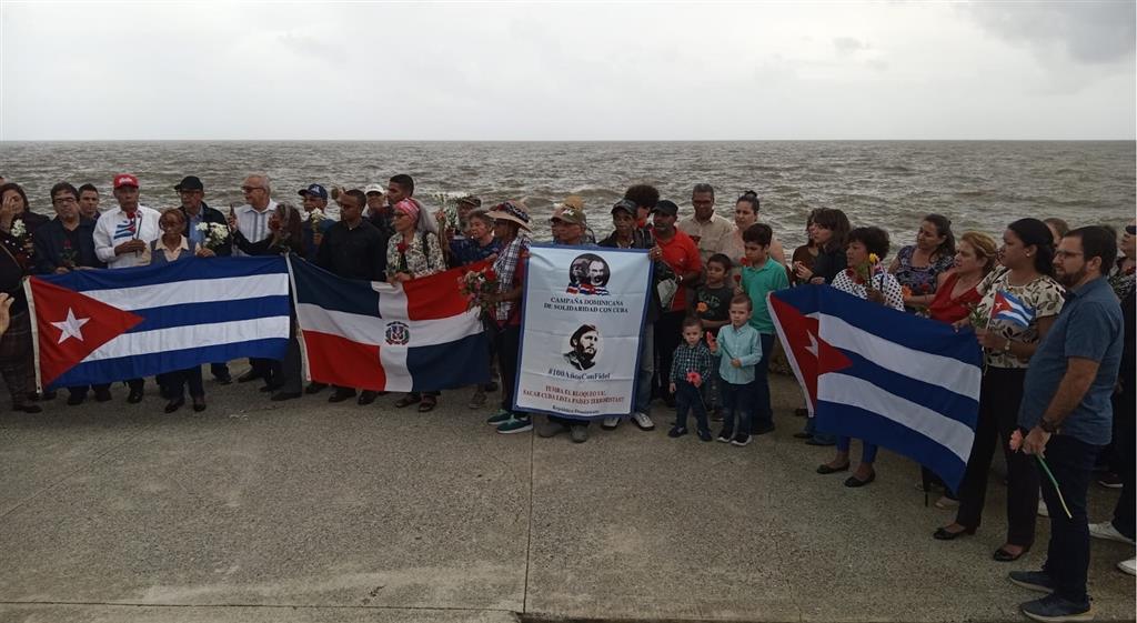 Presentes también representantes de la Campaña Dominicana de Solidaridad con Cuba, fuerzas políticas amigas, cubanos residentes en el país y el profesor Luis de León, presidente de la Cátedra extracurricular José Martí de la Universidad Autónoma de Santo Domingo (UASD) y el presidente de la Fundación Máximo Gómez, Yván Peña.
