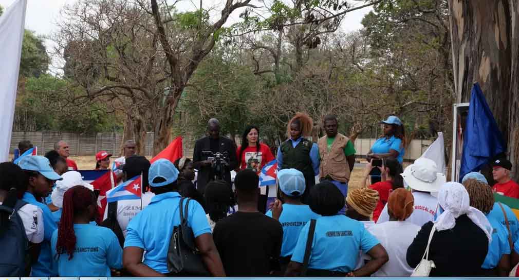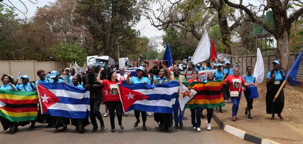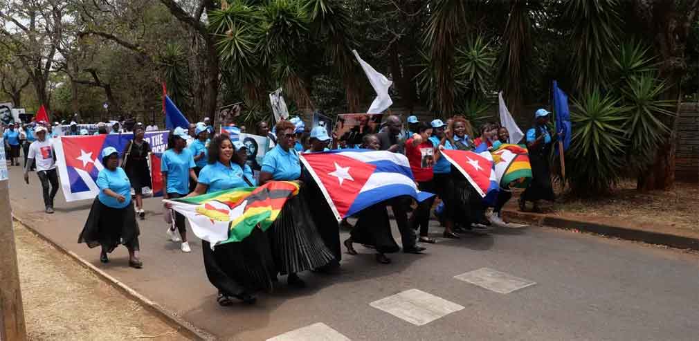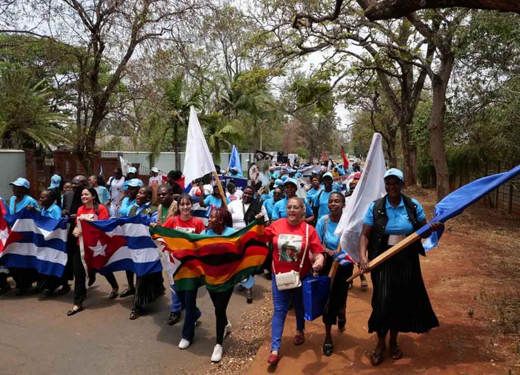 La solidaridad se hizo presente desde antes de iniciarse el recorrido, con bailes y canciones típicas en demanda del cese del bloqueo y, de conjunto, de las medidas coercitivas unilaterales que sufre Zimbabwe de parte de Estados Unidos y sus aliados.