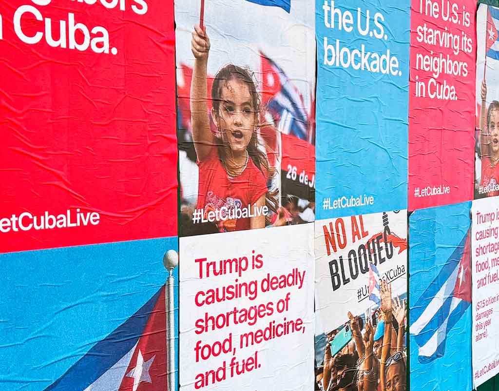 En el céntrico Time Square, en pleno Manhattan, los carteles gigantes han iluminado la ciudad. Un mensaje publicado en X por The People’s Forum, promotor de la iniciativa, señala el pueblo estadounidense no apoya la política de hambre del presidente Donald Trump y exige el fin del bloqueo estadounidense a Cuba.