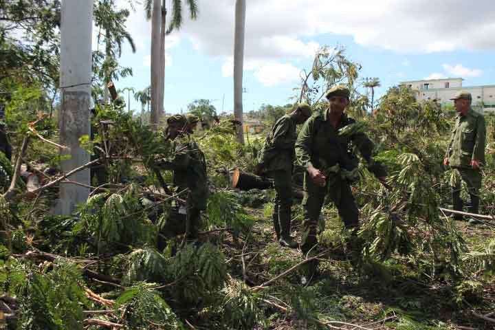 En otro punto de la ciudad, Prensa Latina contactó con el Teniente Coronel Rubelkis Quevedo, al frente de una brigada de la Región Militar Santiago de Cuba, quienes trabajan en la limpieza de la Avenida de las Américas, otra de las arterias principales de la ciudad.
