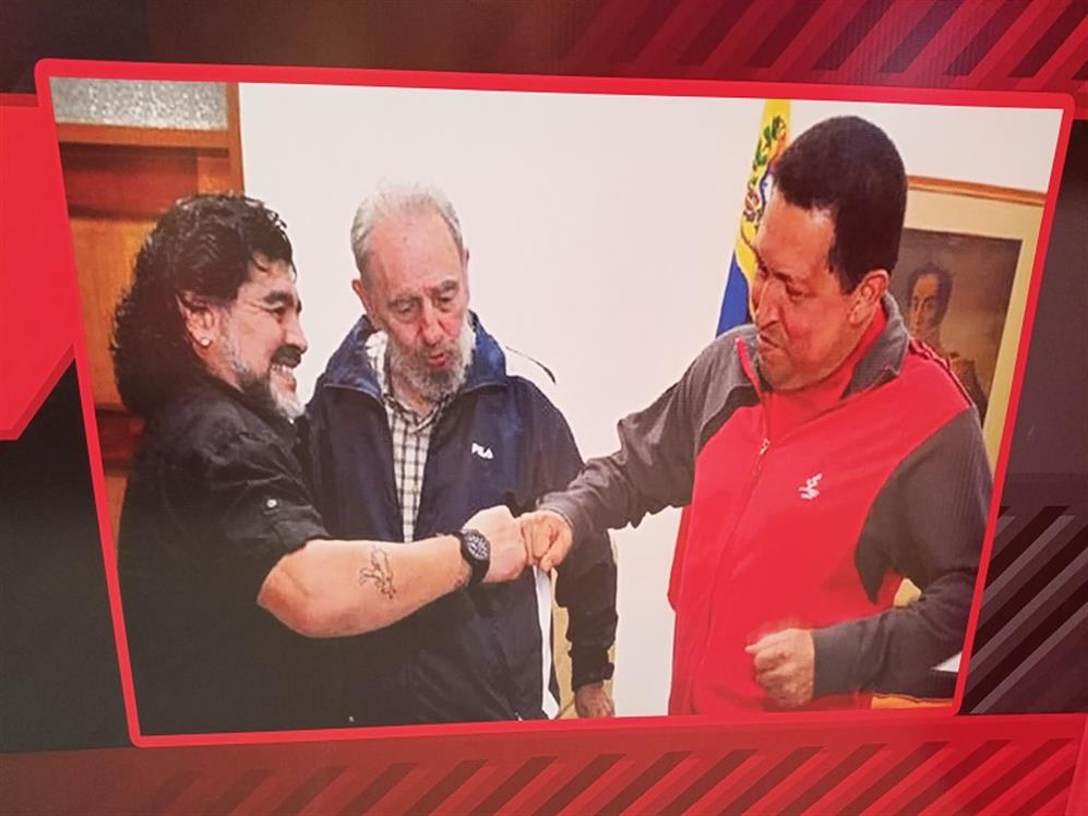 No podían faltar sus encuentros con personalidades como el Papa Francisco y sus amigos Fidel Castro, Hugo Chávez y Nicolás Maduro, con quienes no solo compartió su pasión por el fútbol, sino también posiciones políticas que defendió siempre hasta su muerte, que va a ser ahora cinco años el 25 de noviembre.