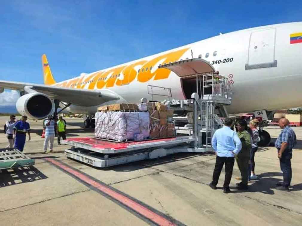 Entre las naciones que asisten a Santiago de Cuba con su carga solidaria, están la República Bolivariana de Venezuela con módulos de alimentos y aseo, que arribaron al territorio por el Aeropuerto Internacional Antonio Maceo Grajales, en una aeronave de Conviasa.