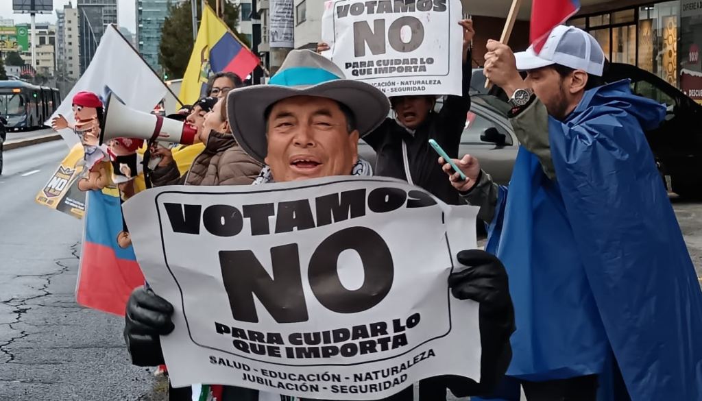 “Desde las organizaciones sociales, así como desde colectivos de mujeres, ambientalistas, trabajadores y educadores, invitamos a que acudamos con fe, alegría y contundencia a castigar al autoritarismo en las urnas con cuatro veces no”, afirmó la vicepresidenta de la Conaie, Ercilia Castañeda.