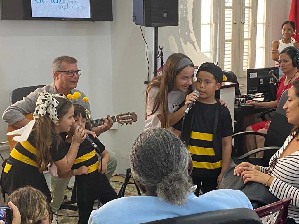El encuentro concluyó con los acordes de Solamente una ventana, uno de los temas emblemáticos de Ángel Quintero, interpretado por niños de la Compañía de Teatro Infantil La Colmenita y René Baños en la guitarra, canción que acompañó en sus voces el público presente.