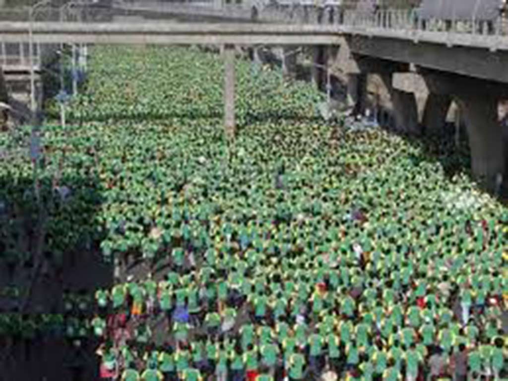 Cada año, la masiva convocatoria reúne a personas de todos los sectores sociales en las principales avenidas de esta capital que, ya sea caminando, bailando o corriendo detrás de atletas reconocidos.